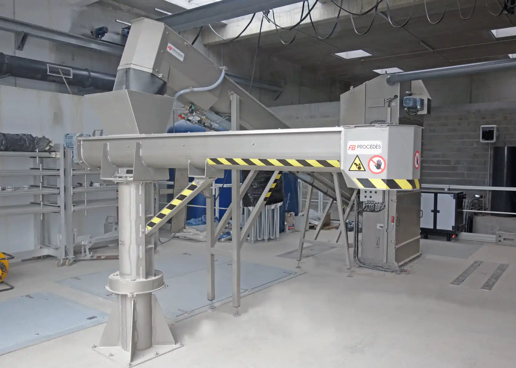 Le mois dernier, nous avons donc participé à la mise en route d’un dégrilleur automatique de type NG11, associé à une vis de compactage de type VCP250, mais aussi une vis de transport pivotante type VTP200.