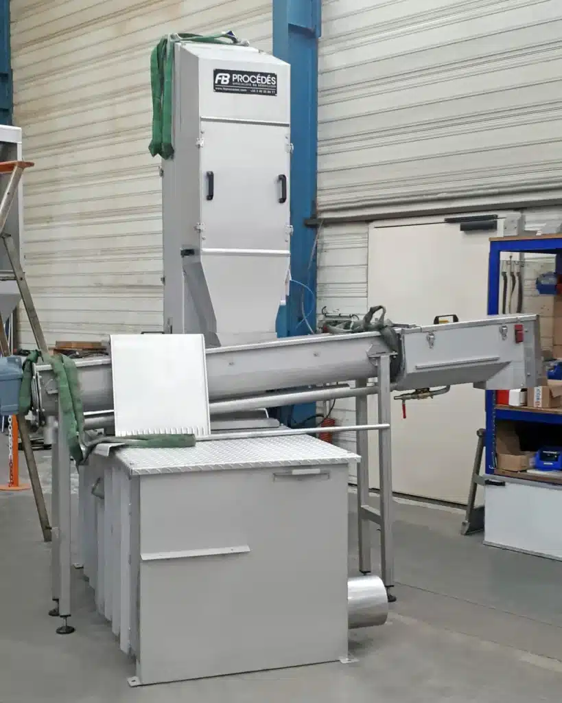 Enfin, les refus de dégrillage sont compactés, égouttés et renvoyés au rez-de-chaussée dans un bac à déchets via une goulotte de descente.
