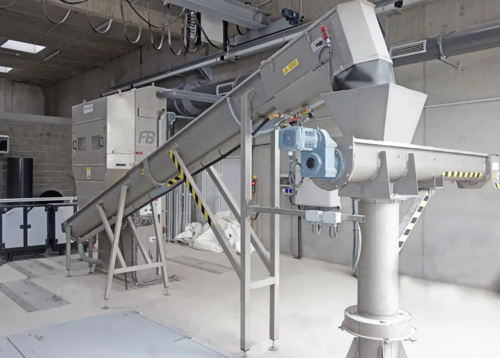 - Tornillo transportador tipo VTP200, longitud 2.500 mm, con pivote para la descarga de residuos en varios puntos