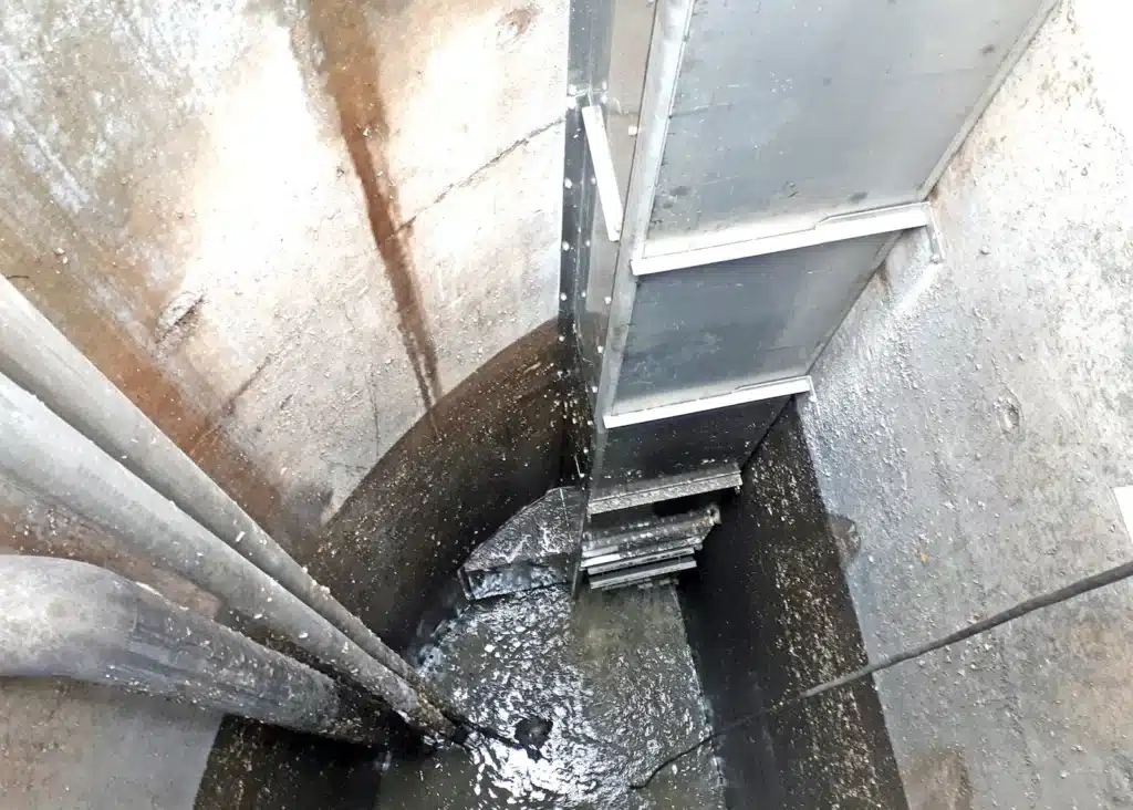 Du fait de la particularité de ce poste (surélevé par rapport au Terrain Naturel, grande profondeur) et du positionnement du dégrilleur (désaxé de la conduite d’arrivée de l’effluent), nous avons dû réaliser une prise de cotes minutieuse avant le lancement en fabrication. L’adaptabilité de nos dégrilleurs aux génie-civils existants prend tout son sens sur cette installation.