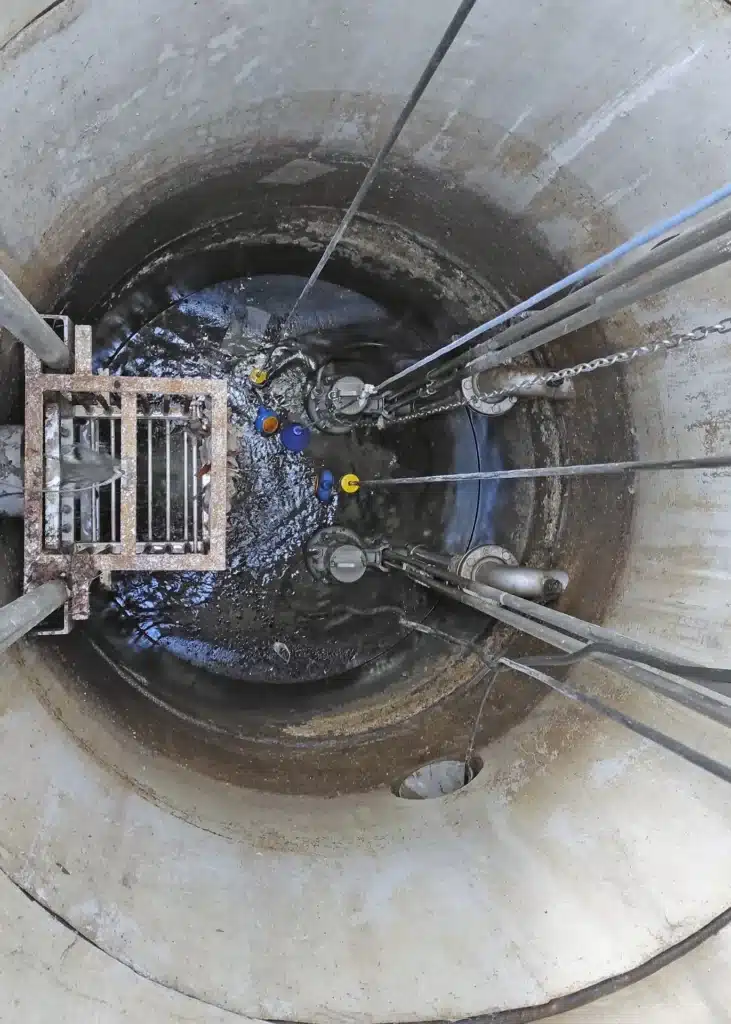 Suite à la demande de notre client, et la visite de notre commercial pour une prise de cotes, nous lui proposons la mise en place d’un dégrilleur, installé en lieu et place du panier manuel, plaqué contre la paroi verticale du poste et face à la conduite d’arrivée de l’effluent. Il ne prend pas plus de place, et les deux pompes peuvent toujours être remontées sans la moindre modification.