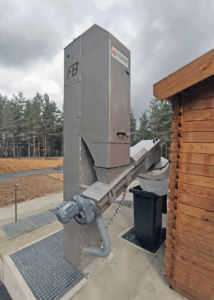 Une plateforme de compostage équipée de dégrilleurs